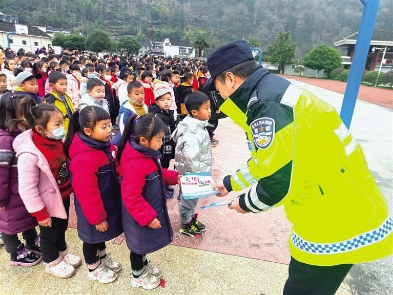 近日,吉首市公安局交通管理大队三中队组织交警来到矮寨镇矮寨小学,开展交通安全宣传活动,将交通安全知识送进校园。活动中,交警围绕“知危险,会避险,守护安全成长”宣传主题,结合典型案例,详细介绍了步行、乘坐电动自行车和汽车的注意事项,号召同学们争做传播遵守交通安全法规的小使者,把学到的交通安全知识分享给身边的人,筑牢交通安全防线。 本报全媒体记者 彭 伟 通讯员 田 梅 摄