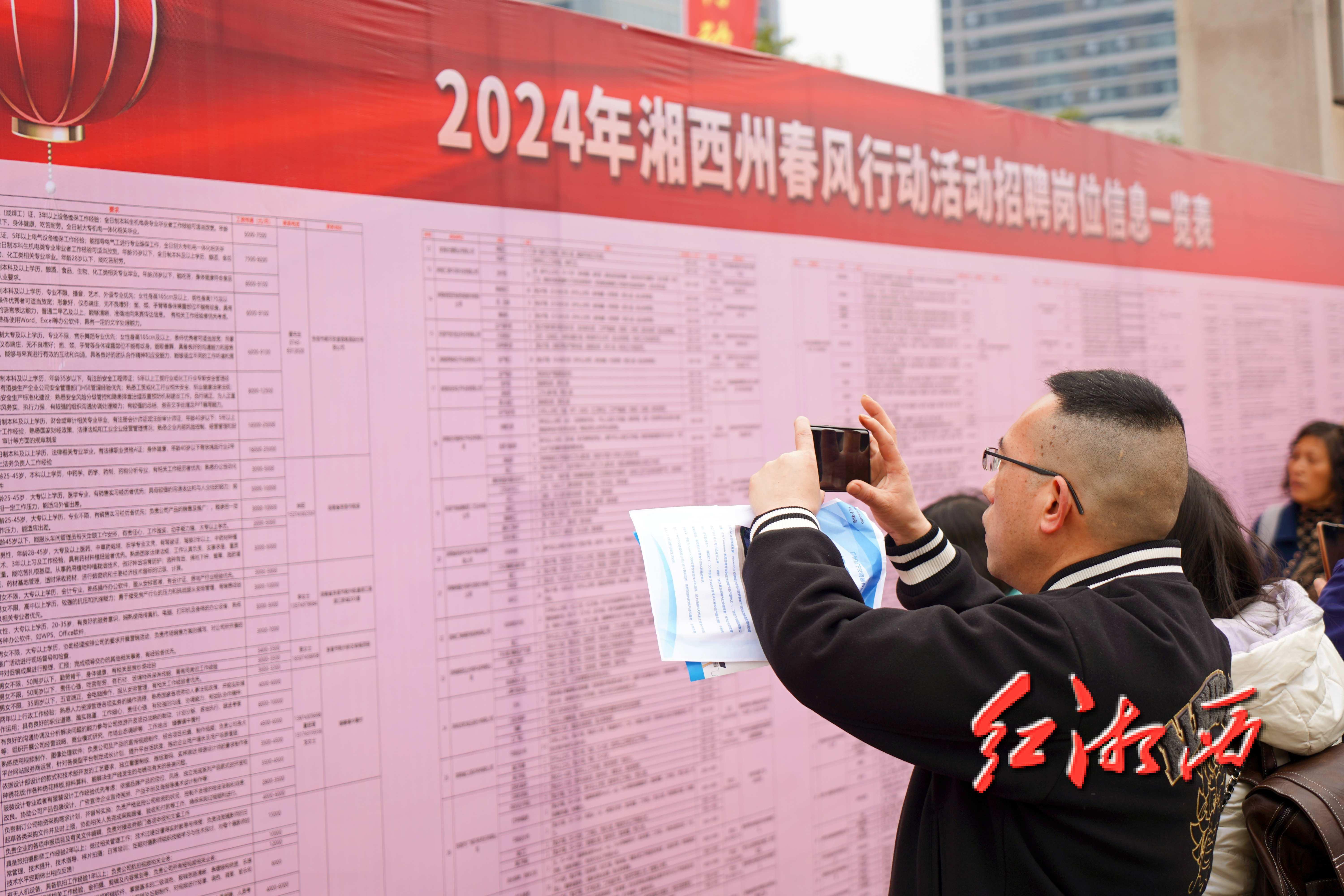 2月19日,2024年湘西州“春风行动”系列服务活动在吉首市世纪广场启动。本次“春风行动”以“春风送岗促就业,精准服务助发展”为主题,228家企业现场招聘,其中州内115家、州外113家,提供就业岗位4.6万个,涵盖零售、制造、电力、教育、餐饮、金融、电商等多个行业,吸引3000余名求职者现场咨询。团结报见习记者 宿中元 摄影报道