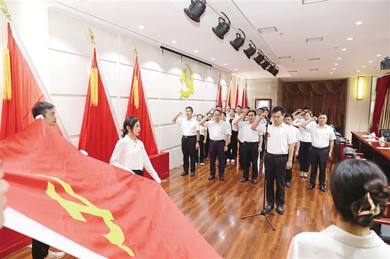 党员干部重温入党誓词。 胡大湘 摄