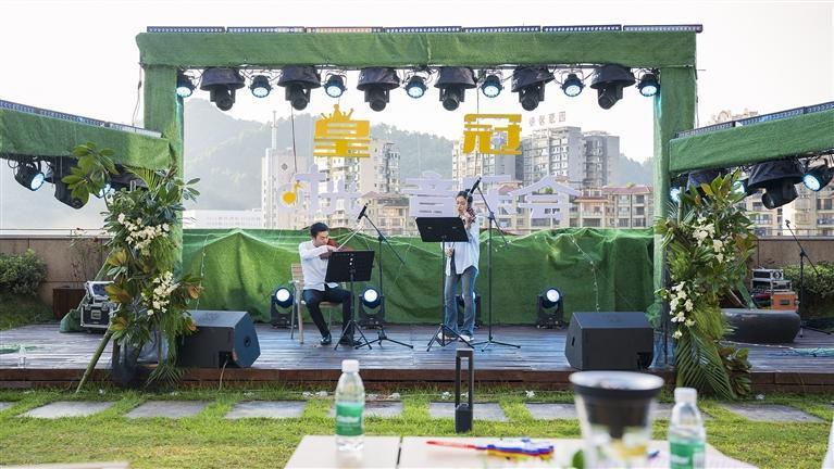 开局活动安排在湘西皇冠国际酒店,在酒店的五楼空中花园举办了一场“时光音乐会”,听怀旧歌曲,吃烧烤喝啤酒看足球。