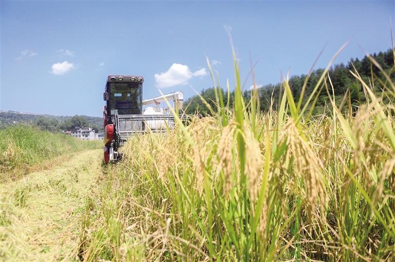 8月22日,来自江苏省南通市的收割机驾驶员驾驶机器在龙山县桂塘镇古道溪村收割水稻。连日来,该县种植的水稻相继成熟,进入秋收大忙季节,不少外地收割机队伍跨区来到该县,帮助农民收割水稻,助力秋收。 曾祥辉 摄