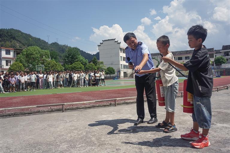 9月2日,永顺县灵溪镇吊井九年制学校,消防人员现场讲授灭火器的使用方法,强化师生消防安全意识,增强师生自救自护能力。 吴华 摄