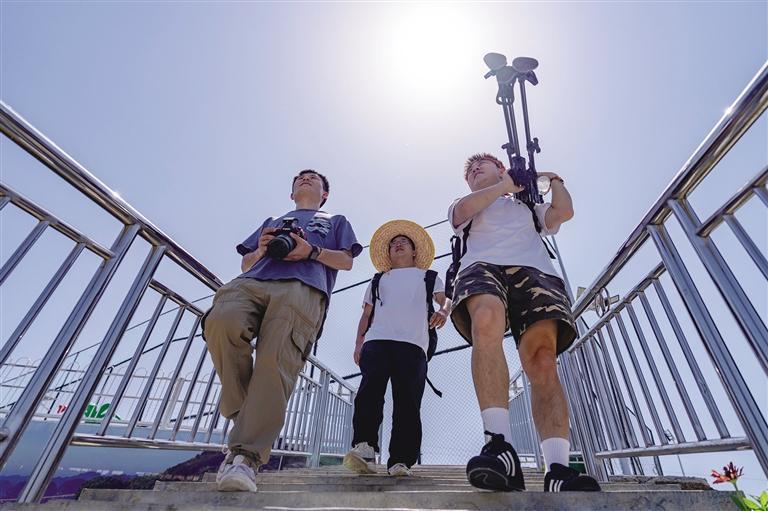 8月13日,吉首市融媒体中心记者顶着烈日在乾州街道大庭村进行乡村振兴采访拍摄。 彭璟 摄