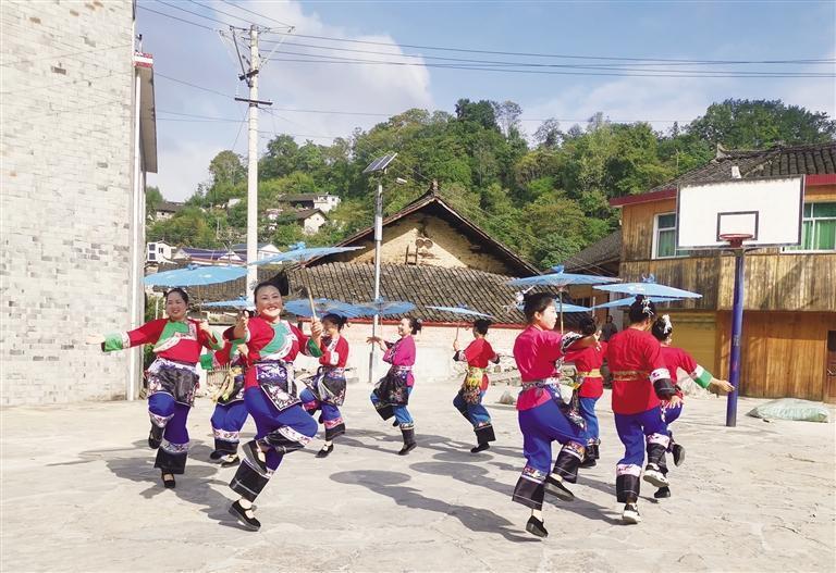 近日,非遗村镇省级示范点——花垣县双龙镇排碧板栗村,村民们利用休息时间排练苗族接龙舞。近年来,花垣县依托丰富的非遗资源,不断加强非遗挖掘研究、保护传承、转化利用、宣传推广等工作,打造“非遗+文创”“非遗+民宿”“非遗+节庆”等新业态,促进文旅产业提质升级,助力乡村振兴。 团结报全媒体记者 李再兴 摄
