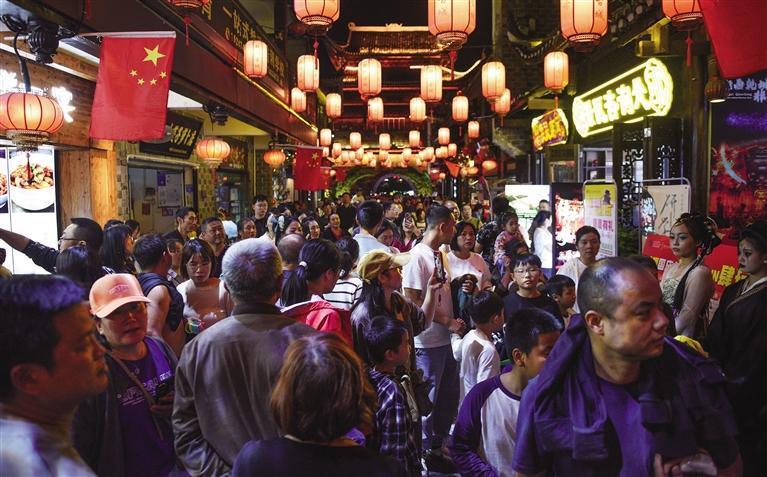 国庆期间,吉首市乾州古城特色民俗文旅节目精彩纷呈,吸引众多市民游客前来共享节日乐趣和喜庆氛围。 姚方 杨燕萍 摄