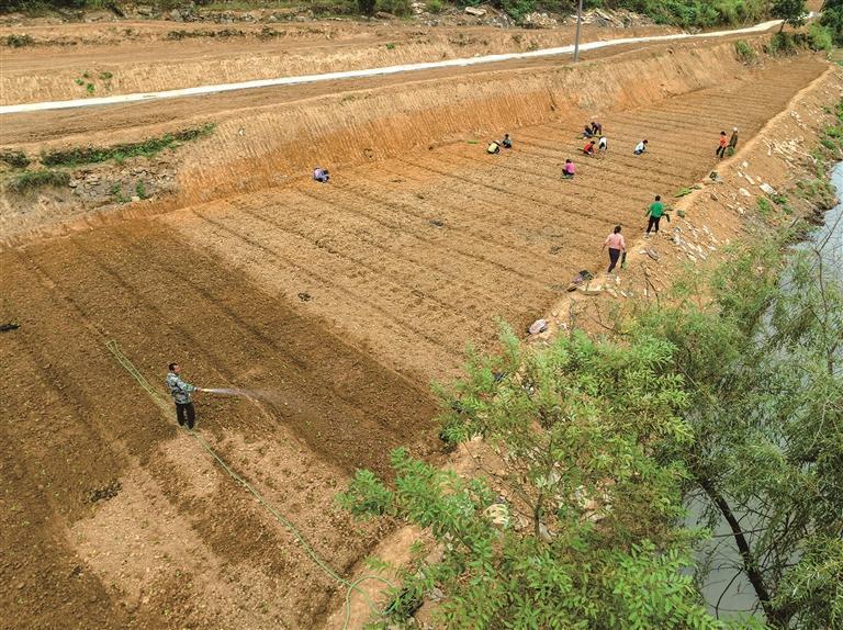 10月7日,村民在吉首市石家冲街道曙光村移栽白菜苗。寒露时节,当地农民抢抓农时,田间地头一派繁忙景象。 彭璟 摄