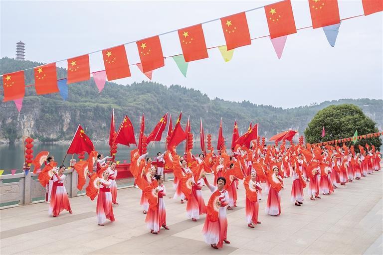 10月11日,泸溪县武溪镇白沙社区举行“快乐之约·乐龄芳华”文艺汇演活动,健身队队员们载歌载舞,在一片喜庆祥和的氛围中欢度重阳节。 张克宁 摄