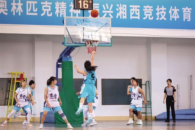 10月24日,女子组篮球比赛中,吉首队与花垣队在进行激烈角逐。