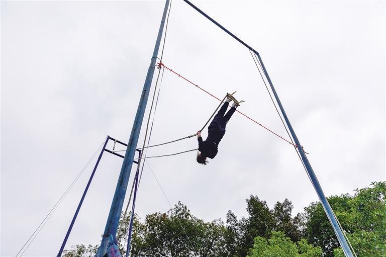 10月21日,秋千项目选手在进行该项目单人触铃比赛。