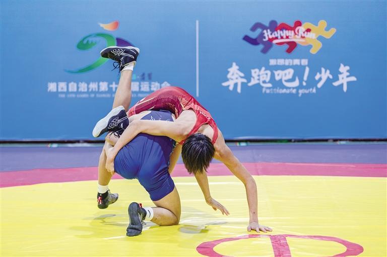 10月21日,男子摔跤比赛现场。