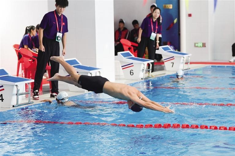 10月23日,乙组男女混合4×100米自由泳接力赛现场。