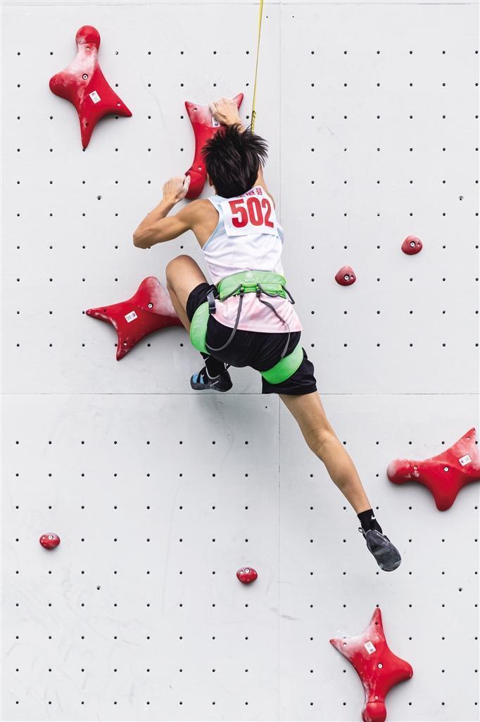 10月21日,男子乙组攀岩速度决赛现场。