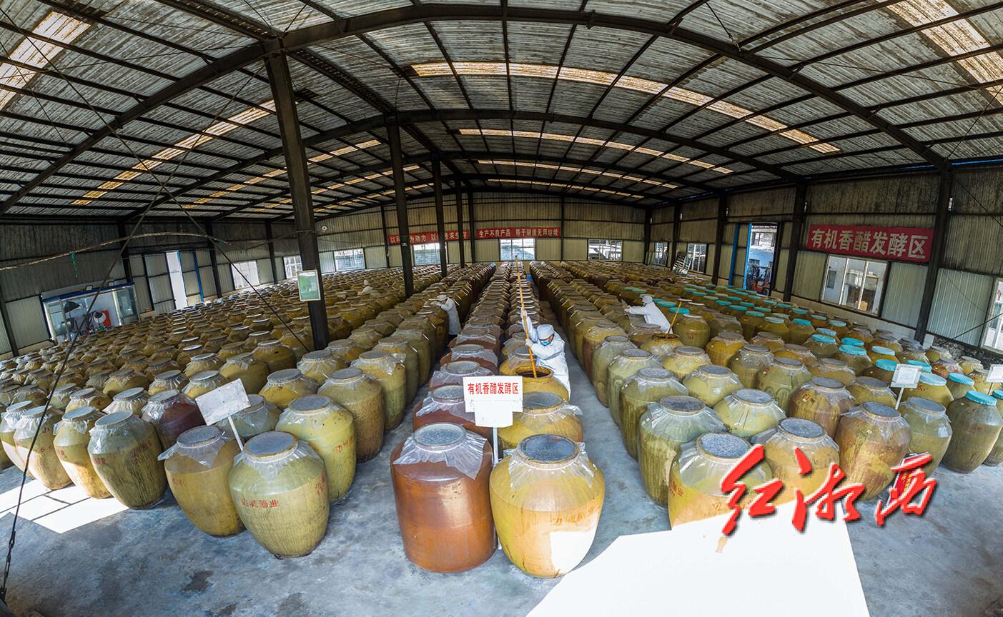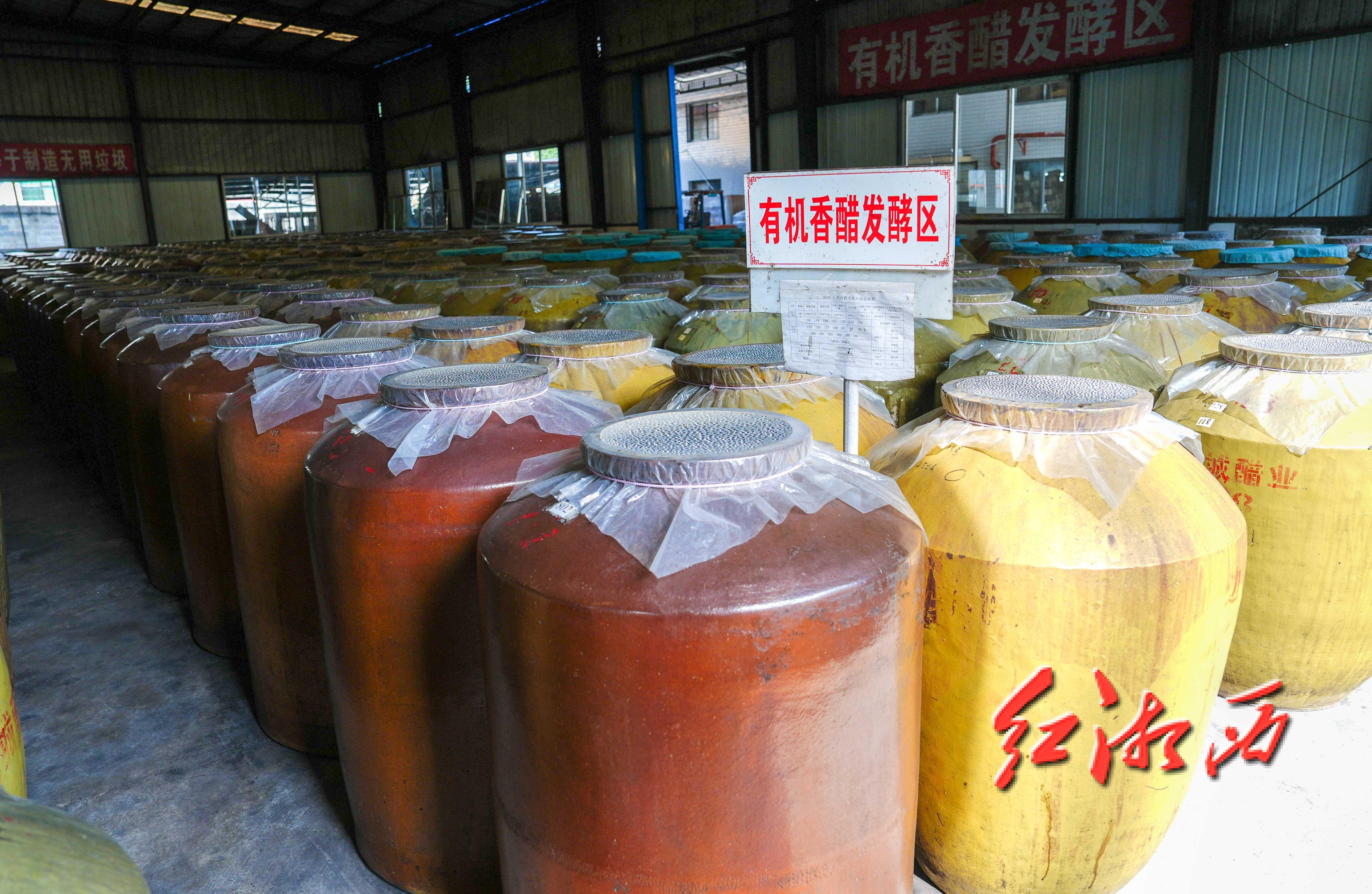 罐中储存着发酵好的有机香醋。