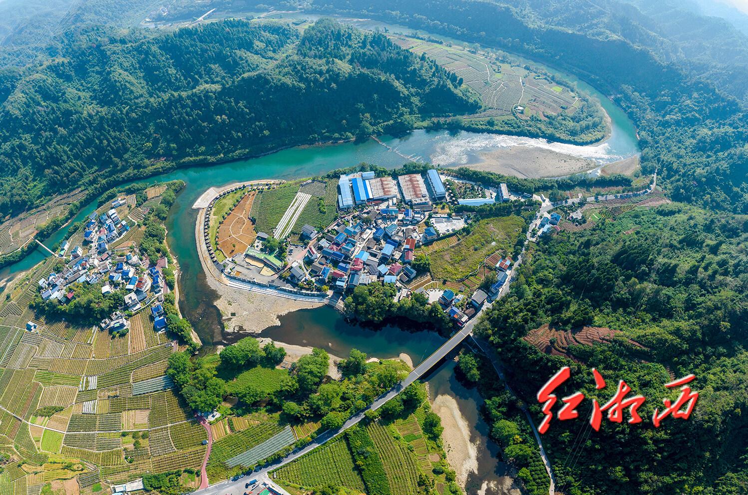 湖南边城生物科技有限公司创建于2005年,位于湘西州吉首市河溪镇张排村,是生产养生醋、酵素、SOD及民族药等康养产品的湖南省农业产业化龙头企业、国家高新技术企业。图为航拍湖南边城生物科技有限公司,依山伴水,地理位置十分优越。团结报全媒体记者 杨贤清 摄影报道