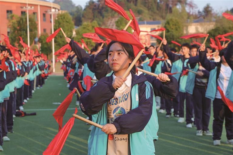 11月11日,吉首市第一中学3000余名师生在“咚咚”的苗鼓声中进行阳光大课间活动。该校进一步深化体教融合,强化“五育”并举,师生们在大课间锻炼身体,释放工作学习压力,让校园充满生机与活力。 李林华 高慧 摄