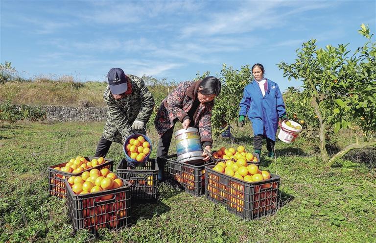 12月1日,花垣县花垣镇兴农园社区水果种植基地,村民在采收“红美人”柑橘。近年,该社区采取“党支部+公司+基地+农户”模式,通过土地流转,种植“红美人”柑橘近百亩,带动当地群众增收,助力乡村振兴。 龙艾青 摄