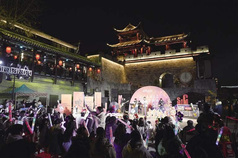 2024年12月31日晚,吉首市融媒体中心在乾州古城举办城市音乐日“给未来的自己”跃动迎新夜音乐活动,市民群众齐聚一堂,在热闹欢快的音乐中一起迎接2025年的到来。 团结报全媒体记者 杨帆 摄