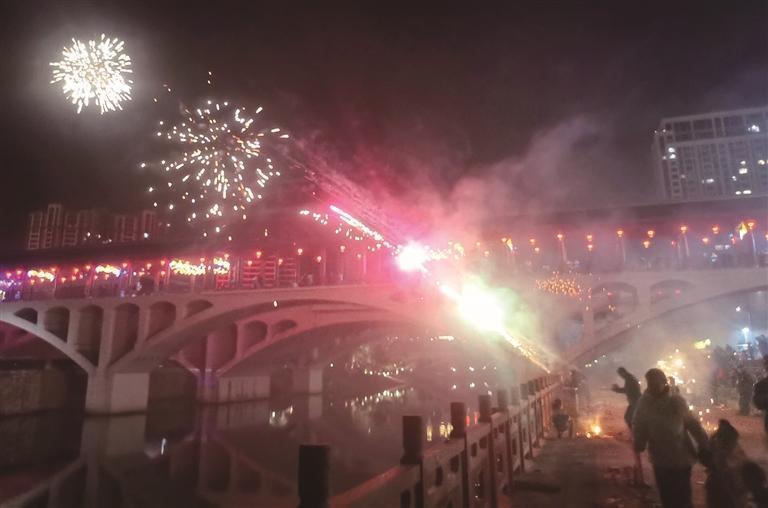 2024年12月31日晚,湘西高新区文化公园,人们燃放新年烟花,火树银花照笑脸,流光溢彩迎新年。 团结报全媒体记者 李再兴 摄