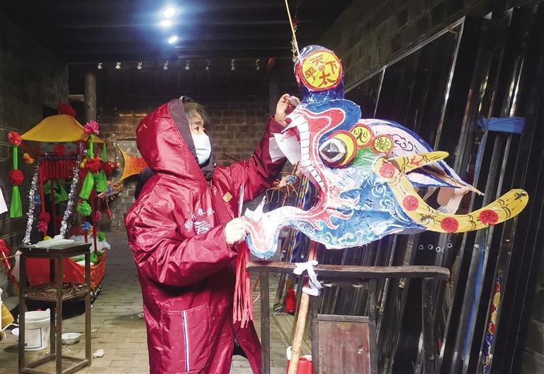 连日来,吉首市乾州古城杨岳斌故居,“乾州春会”省级非遗传承人滕勇带着手艺人们忙着扎制“火龙”“春牛”“螃蟹”“锦鱼”等“春品”,为一年一度的 “乾州春会”作准备。 团结报全媒体记者 李再兴 摄