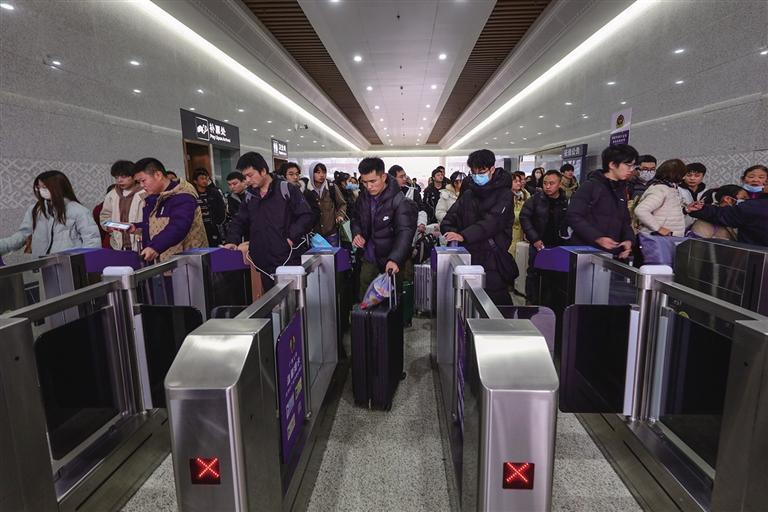 1月14日,龙山县龙山北站,旅客依次出站。当日,为期40天的2025年春运启动。 曾祥辉 夏建国 摄