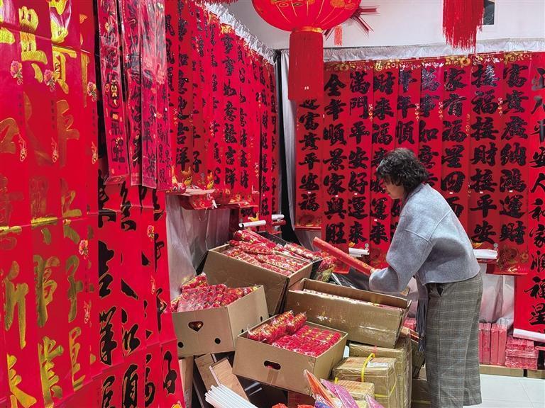 1月14日,凤凰县城区,市民在挑选春节饰品。随着春节临近,灯笼、春联等传统装饰品逐渐热销。 本报全媒体记者 阙志明 周楚怡 摄