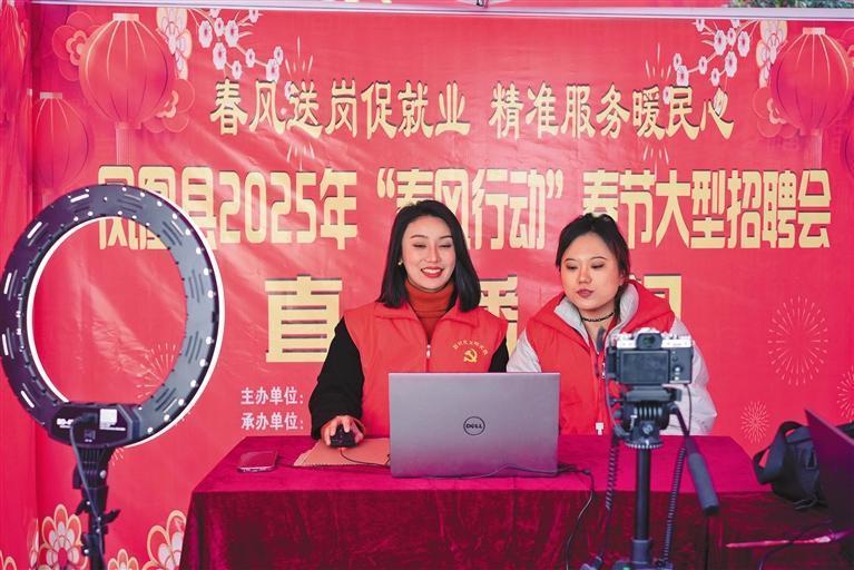 2月6日,凤凰县开展“春风行动”春节大型招聘会,在线下主会场的基础上同步开设送岗直播间,扩大就业指导、信息咨询、企业连线等便捷服务范围,纾解用工难、就业难问题,提高群众就业质量,架起企业与人才沟通的桥梁。 蒋文杰 吴刚华 摄