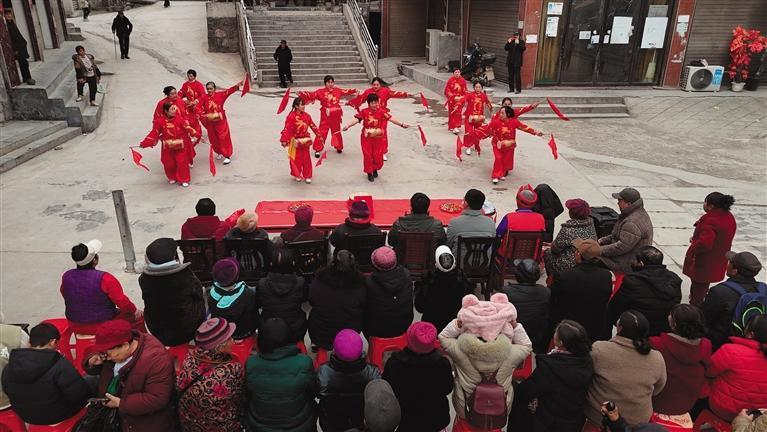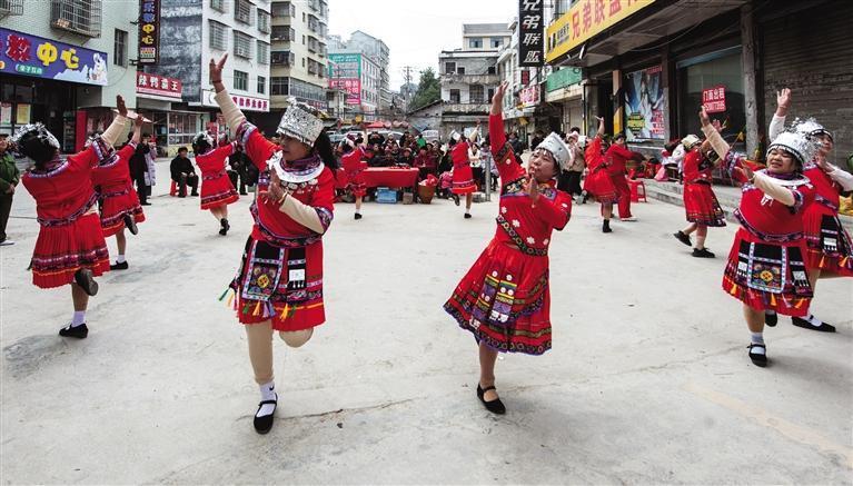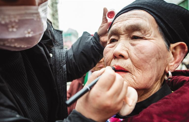 2月10日,是永顺县石堤镇赶集的日子。这天,集市旁的宝灵亭挤满了人。原来这里正在进行文艺节目表演,《九子鞭》《上梁》《哭嫁》《山歌对唱》和《歌唱祖国》等热闹上演,大家掌声不断。节目主持人介绍:“在宝灵亭这里,天天都有老人唱歌跳舞,逢场天人就更多了,这主要是王婆婆的功劳。”