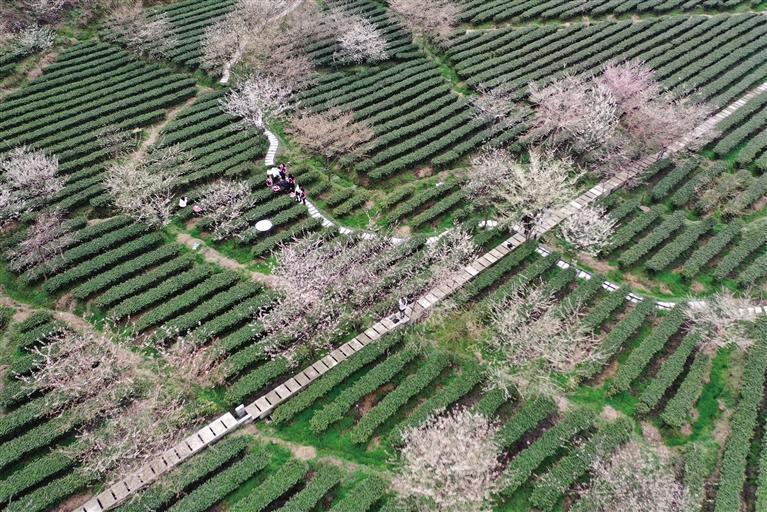 3月7日,龙山县红岩溪镇肖家坪村茶园鲜花盛开,吸引游人前来赏花,享受春日阳光。近年来,该县将经济发展与乡村旅游结合起来,催生茶旅融合新业态,添加乡村振兴的绿色动力。