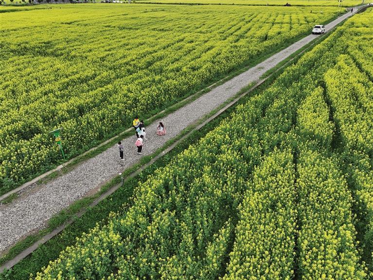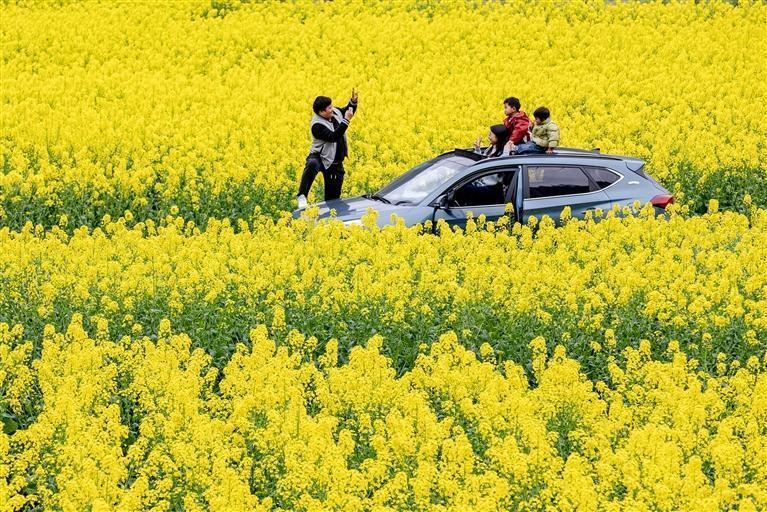 3月17日,泸溪县浦市镇青草村的万亩油菜花迎来盛放期,连绵的金色花海与远山、溪流、村落交相辉映,勾勒出一幅生动的田园画卷。游客穿梭于花田间,或驻足拍照,或漫步赏景,尽享春日浪漫。近年来,青草村以“千亩油菜花”为核心打造农旅融合示范区,通过无人机植保、机械化耕种等技术提升种植效率,成为当地乡村振兴的亮丽名片。 团结报全媒体记者 阙志明 摄