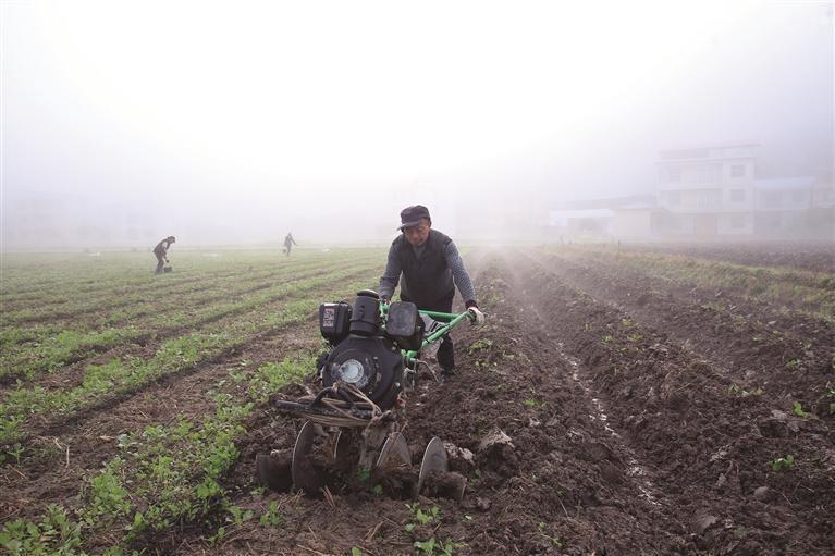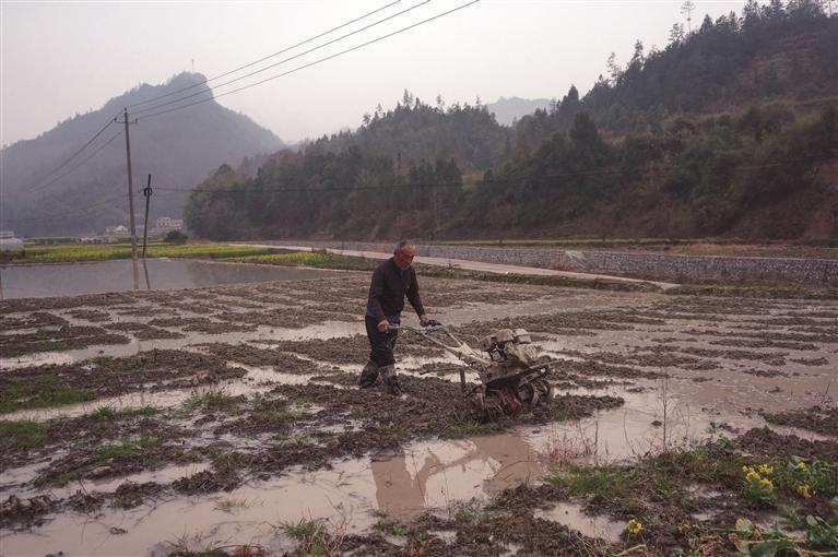 3月18日,龙山县召市镇大兴村,村民操作农机在田间作业。春日万象“耕”新,该县各地加紧开展春耕生产,田间地头处处可见农民忙碌的身影。 田礼成 摄