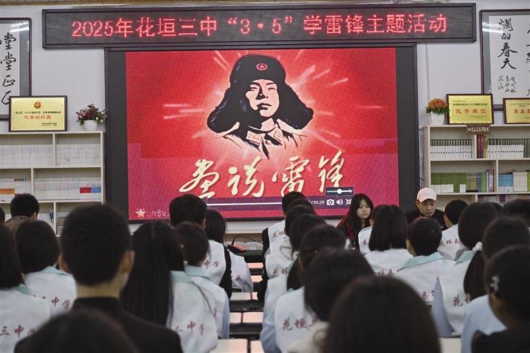 3月5日,花垣县第三中学开展学习雷锋主题活动。学生通过观看雷锋故事视频、阅读雷锋故事书籍、分享雷锋故事等活动,学习雷锋精神,争做新时代的“活雷锋”。 龙恩泽 摄