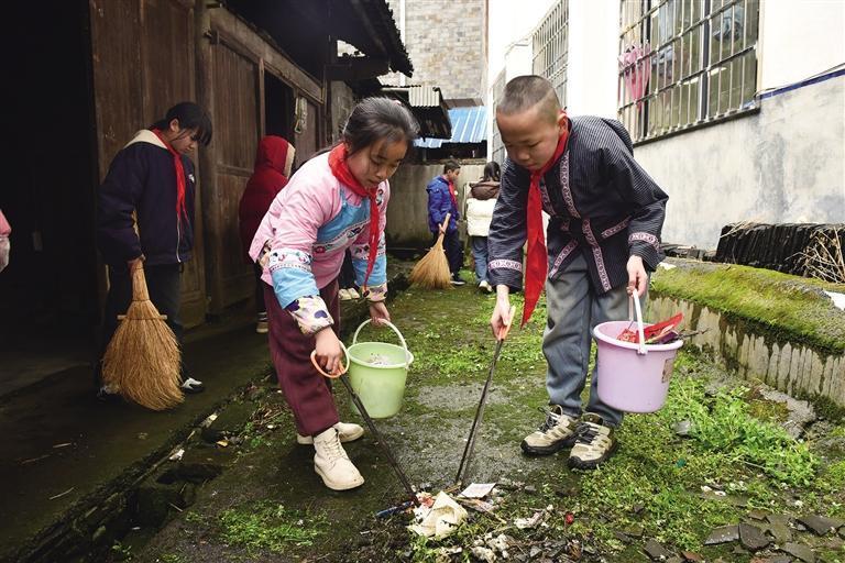 3月5日,吉首市寨阳小学组织学生开展“雷锋家乡学雷锋”志愿服务活动,走进村寨农家庭院和村道清扫垃圾,用实际行动传承和弘扬雷锋精神。 姚方 高求君 摄