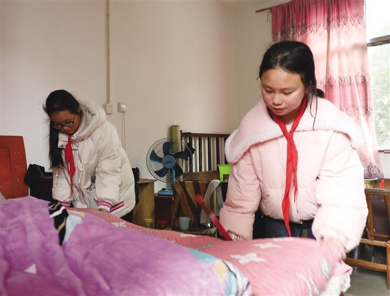 3月4日,保靖县野竹坪小学组织学生来到敬老院,帮助老人收拾房间、陪老人聊天,给敬老院的老人们带去欢乐,让老人们感受到社会大家庭的温暖。 俞采华 王梦妮 摄