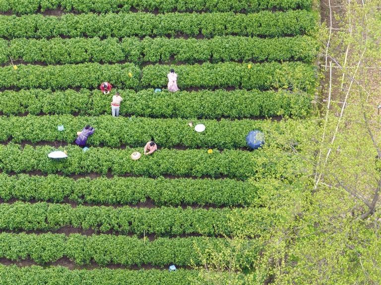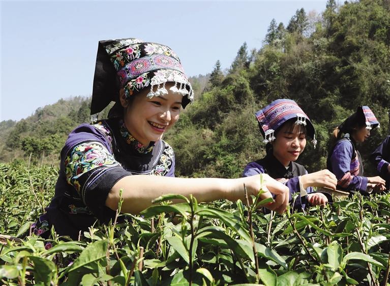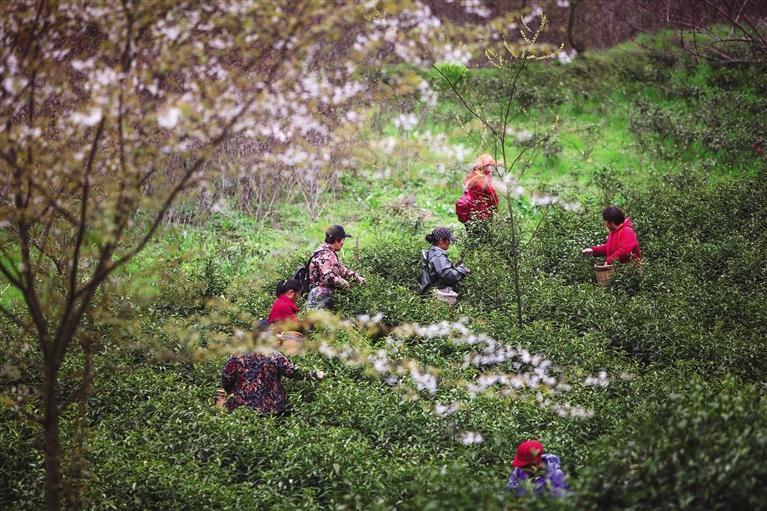 3月22日,吉首市马颈坳镇隘口村,茶农们舞动着灵巧的双手采摘今年的第一批春茶。近年来,隘口村不断发展壮大的湘西黄金茶产业,走出一条“以茶促旅、以旅兴茶、以文传茶”的乡村振兴之路。 团结报全媒体记者 阙志明 摄