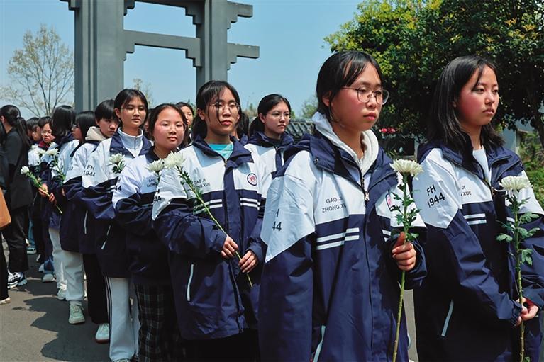 3月31日,凤凰县高级中学联合渭阳社区在该县烈士陵园开展“清明祭英烈,精神永流传”主题教育实践活动,深切缅怀革命先烈,传承红色基因。 廖结梅 陈 娟 摄