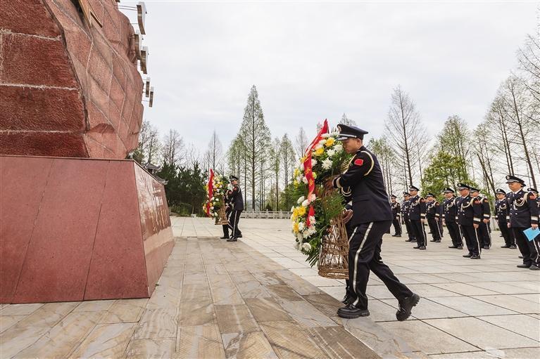 4月3日,泸溪县公安局百余名民警来到武溪镇白沙城南烈士陵园默哀追思并向烈士敬献花篮和鲜花,深切缅怀革命先烈,继承英烈精神,用坚定的理想信念和忠诚铸警魂,立志在新时代续写人民公安为人民的新篇章。 张克宁 田娟 摄