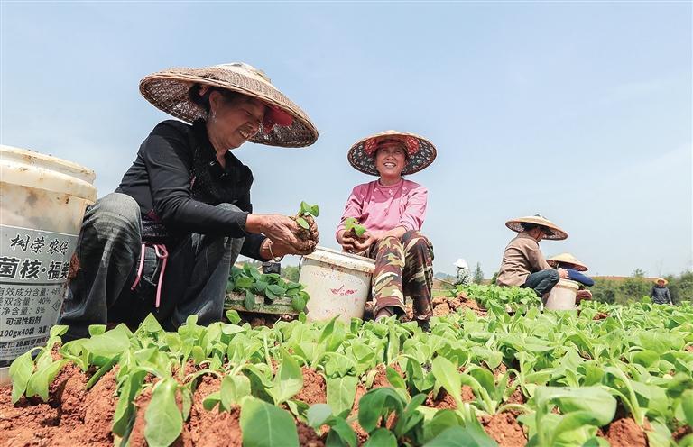 4月7日,花垣县龙潭镇金溶村村民在假植烟叶幼苗,以促进烟苗健壮发育,为下步提升移栽质量及成活率打基础。今年,该村采取“党支部+合作社+大户”模式,规划种植烤烟400亩,托起村民增收致富路。