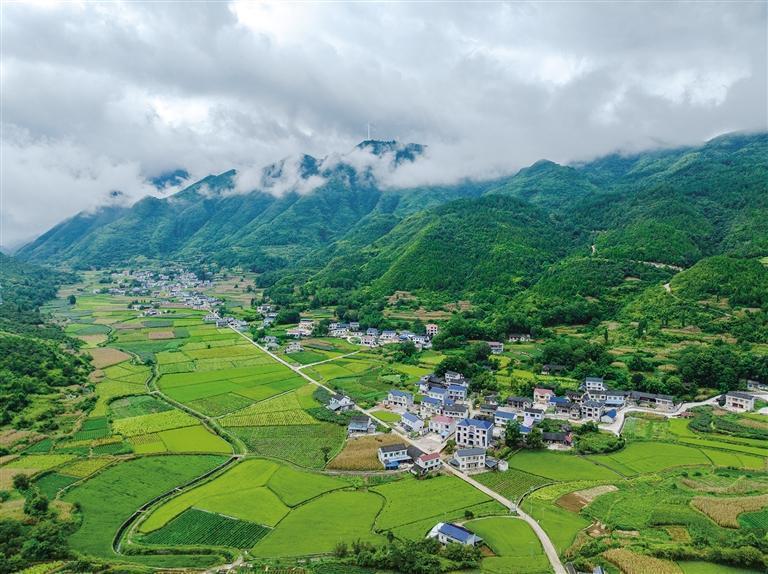 近日,永顺县石堤镇羊峰村,陆续成熟的稻田、错落有致的民居与苍翠的羊峰山交相辉映,构成一幅田园秋景画卷。 团结报全媒体记者 杨帆 余江明 摄