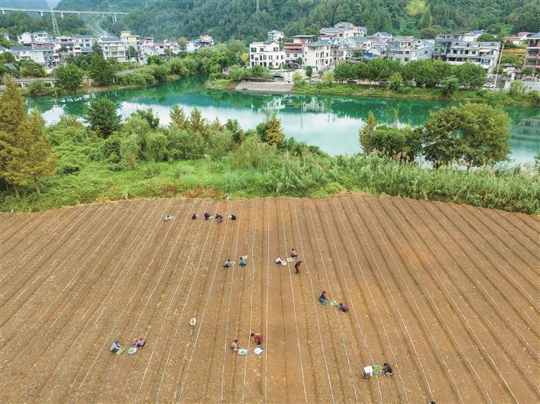 9月24日,吉首市石家冲街道曙光村蔬菜基地,村民抢抓农时移栽冬季白菜苗,田间地头一片繁忙秋种景象。近年,该村通过“村集体+企业+农户”模式发展订单农业蔬菜示范基地2个,有效带动群众就业增收,推动产业提质增效,助力乡村振兴。 彭璟 摄
