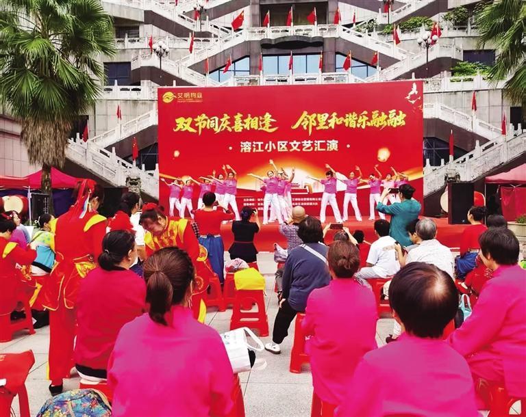 国庆、中秋“双节”将至,9月27日,湘西高新区溶江小区,吉凤街道牯牛坪社区与溶江小区的物业公司联合举办文艺汇演,丰富社区居民精神文化生活,共同欢欢喜喜迎佳节。 团结报全媒体记者 李再兴 摄