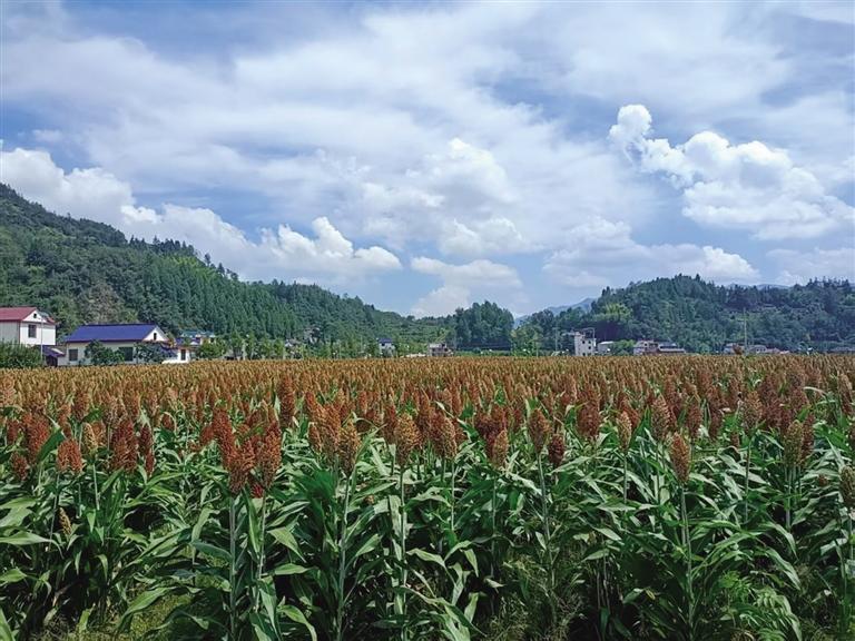 今年来,保靖县复兴镇甘溪村积极发展订单农业,与湘西酒鬼酒股份有限公司采取“村集体+公司+农户”的合作模式,精心打造50亩“东北红缨子高粱示范基地”,带动60名村民务工,已累计发放务工工资4.5万元。图为近日,种植基地的高粱基本成熟,预计产量1.5万公斤,产值11.4万元,助力村民增收和村集体经济发展。 张发军 王泽蓉 摄