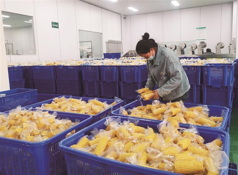 10月20日,在保靖县产业开发区保升农业集团生产车间内,工人忙着分拣真空包装的鲜食玉米棒。保升农业集团自2022年落地保靖以来,新建3条玉米全自动深加工生产线,打造“西湘季”品牌,采取“企业+品牌+基地+村集体经济+合作社+农户”模式,在保靖种植玉米2400亩,打造鲜食玉米种植、加工、销售全产业链,助力农业增效、农民增收、乡村振兴。 团结报全媒体记者 李再兴 付丹 摄