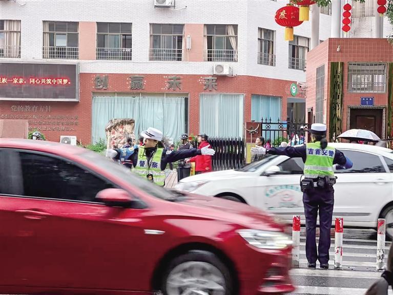 学校门前,女警们正在指挥交通。 吉首市公安局供图