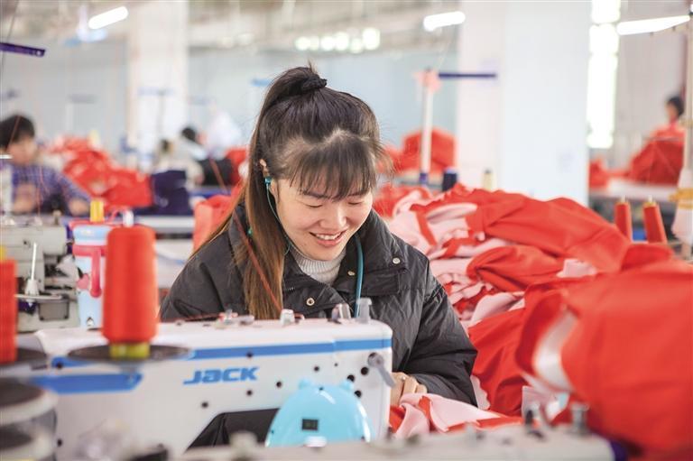 1月7日,龙山县工业园区内,工人在加紧生产订单服装。新年伊始,该县工业园区内一片忙碌,各个企业铆足干劲赶订单、忙生产,力争首季“开门红”。 曾祥辉 李芬 摄