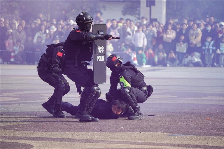 1月10日,吉首市公安局举办“警彩吉首·平安共建”警营开放日。活动现场,特警进行反恐防暴实战演练。 团结报全媒体记者 宿中元 摄