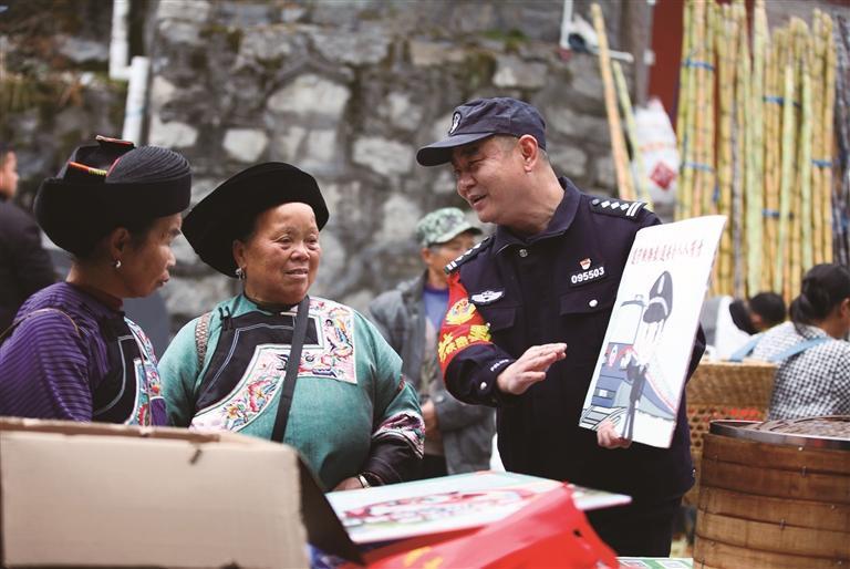近日,怀化铁路公安处吉首火车站派出所民警来到铁路沿线的古丈县默戎镇,开展“冬送平安进苗乡”宣传活动。