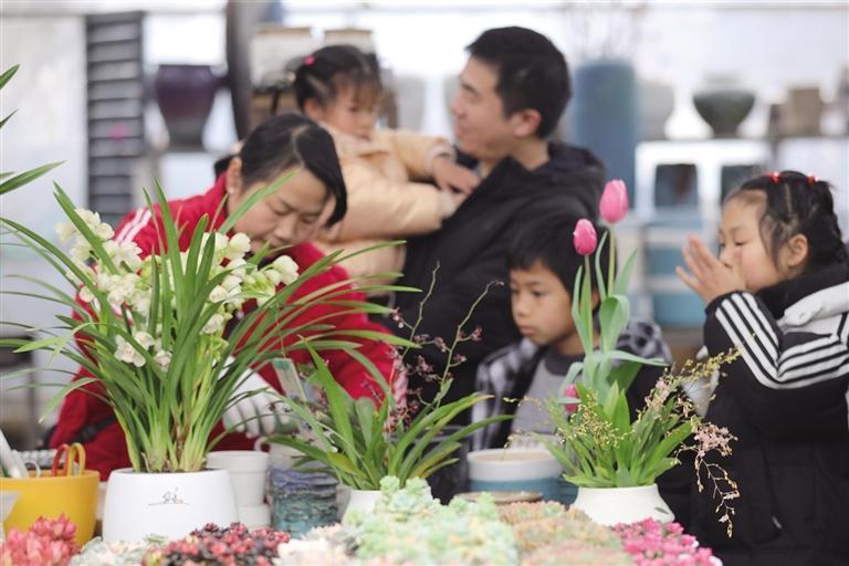 1月27日,在吉首市乾州街道西门口村,市民在花卉市场选购花卉。春节临近,众多市民纷纷选购鲜花绿植装饰环境,营造喜庆祥和的节日氛围。 彭 彪 摄