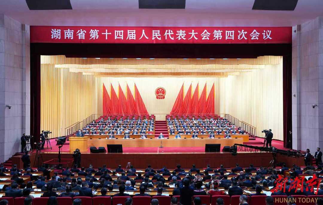 (2月3日上午,湖南省第十四届人民代表大会第四次会议在省人民会堂开幕。)