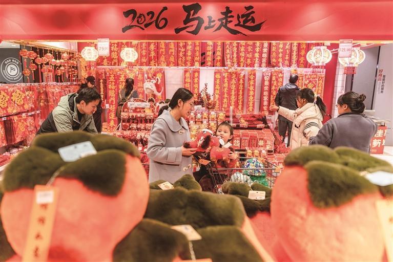 2月8日,吉首市人民中路佳惠超市内,市民在选购马年主题饰品。春节年货市场迎来购物高峰,各类年货及马年主题饰品琳琅满目,满足市民春节消费需求。 彭璟 摄