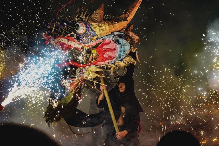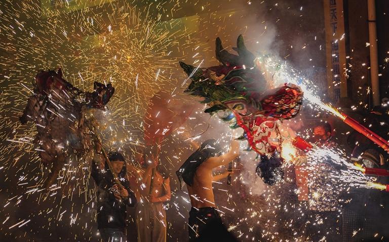 在河溪,只要你点燃手中的焰火,就可以召唤“神龙”。 团结报全媒体记者 胡承鼎 摄